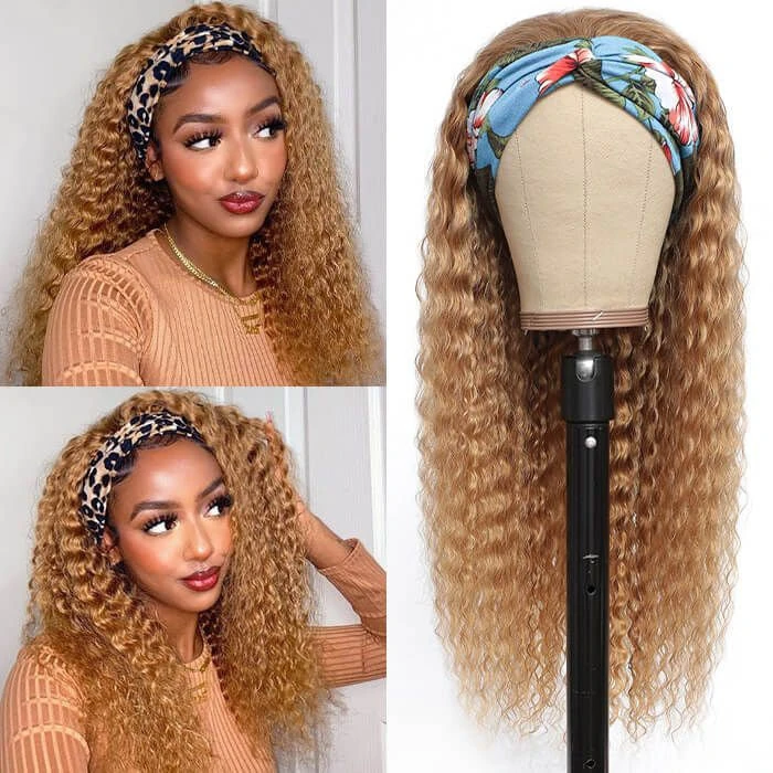 #27 Honey Blonde Headband Wigs Deep Wave Virgin Human Hair