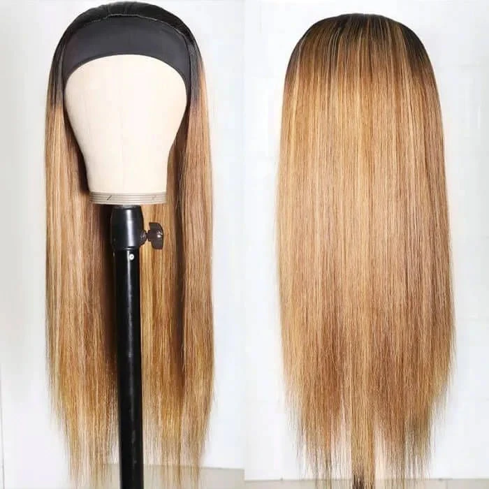 #27 Honey Blonde Headband Wigs Straight/Body Wave Human Hair Half Wigs