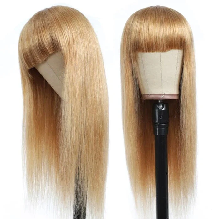 #27 Honey Blonde Human Hair Wigs With Bangs 13×4 HD Lace Wig/Full Machine Made Wig With Bangs