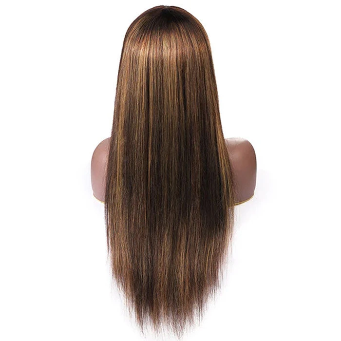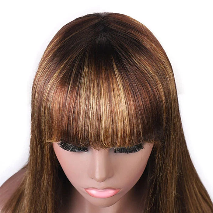 4/27 Honey Blond Highlight Straight Human Hair Wig With Bangs Virgin Human Hair Lace Front Wigs