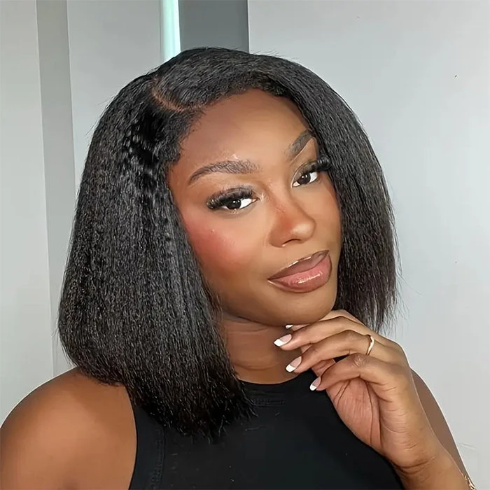 4C Edges Hairline Kinky Straight 8×5 Pre-bleached Knots Natural Scalp 220% Density Short Bob Wig