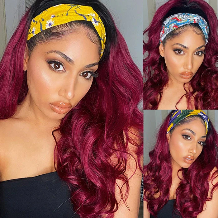 99J Burgundy Color Headband Wigs Body Wave Virgin Human Hair