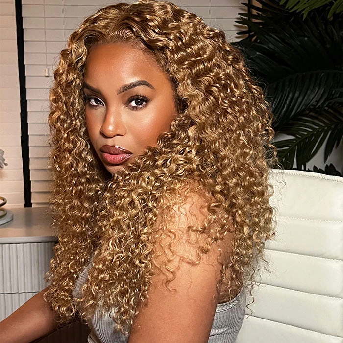 Blonde Curly Wig #27 Color Preplucked 13×4 Frontal HD Lace Wig 100% Human Hair For Women