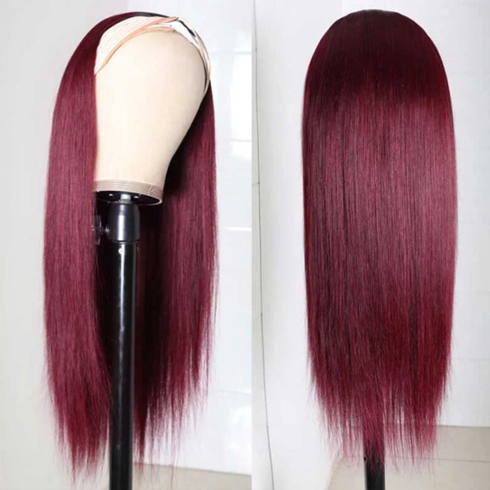 Burgundy 99J T1B/99J Headband Wig Straight Human Hair Wigs Online