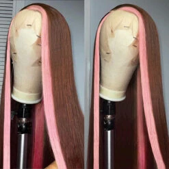 Strawberry Pink & Chocolate Skunk Stripe Color Wig Straight And Body Wave 13*4 Lace Front Wig