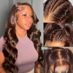 T4/27 Ombre Brown Body Wave Frontal Wigs Glueless 13×6 5×5 HD Lace Front Human Hair Wigs