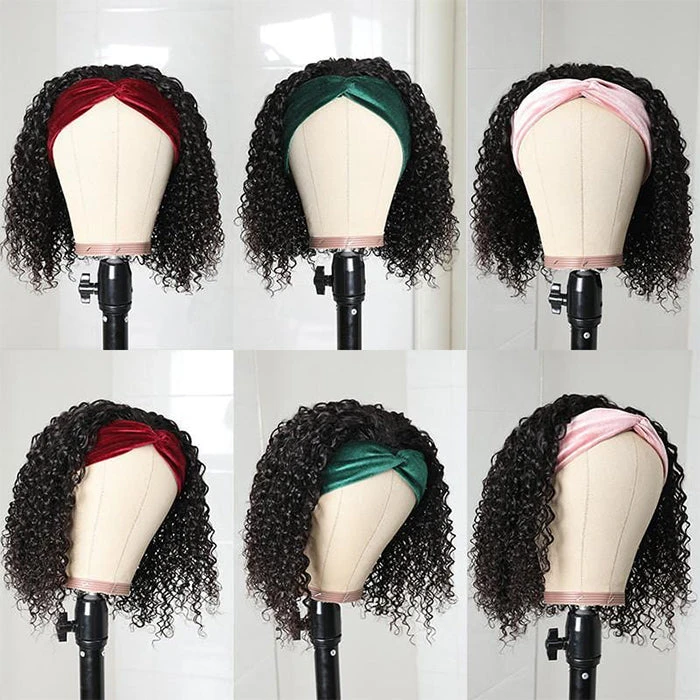 Curly Hair Headband Bob Wig Human Hair Half Wig 220% Density Glueless Human Hair Headband Wig