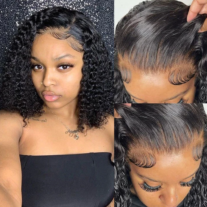 Curly Hair Short Bob Pre Plucked Glueless Lace Front Wigs 100% Human Hair Curly Bob Lace Front Wigs