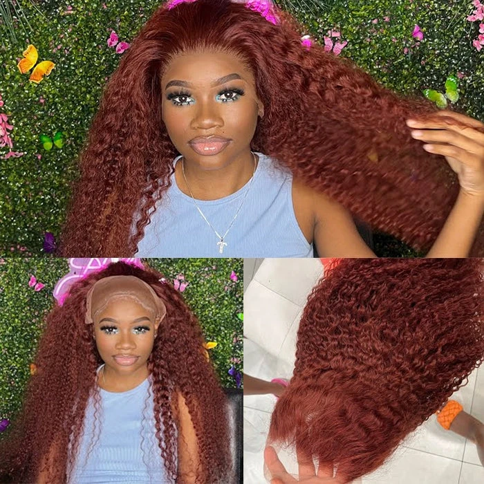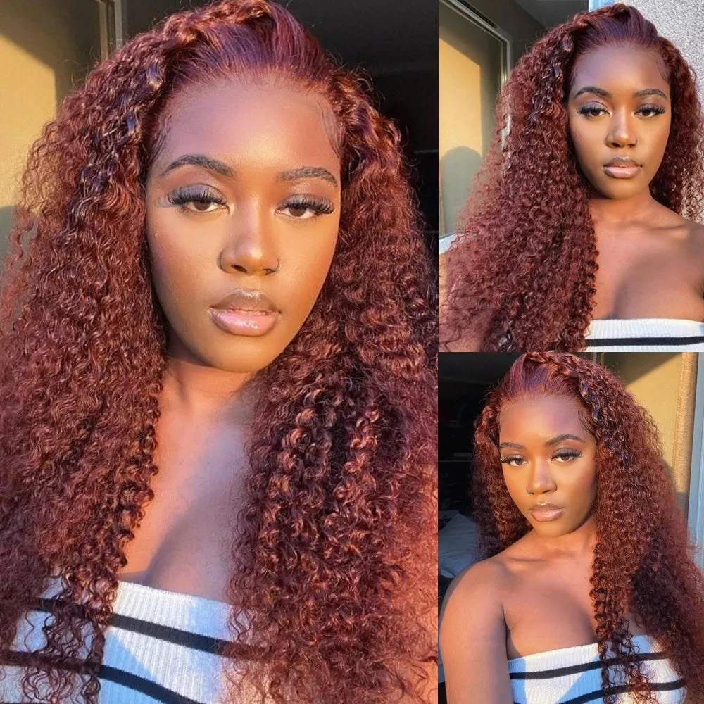 Curly Human Hair Wigs #33 Red Brown Auburn Colored Wig 13*4 5*5 HD Transparent Lace Front Wigs