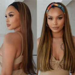 #4/27 Mix Color Highlights Headband Wigs 100% Virgin Human Hair No Gel No Glue Silk Scarf Wigs