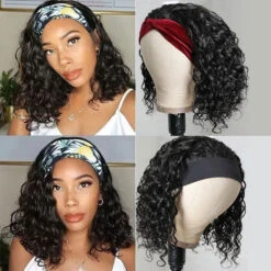 Curly Hair Headband Bob Wig Human Hair Half Wig 220% Density Glueless Human Hair Headband Wig