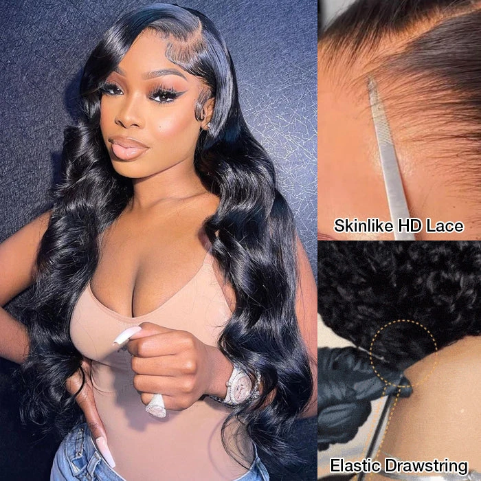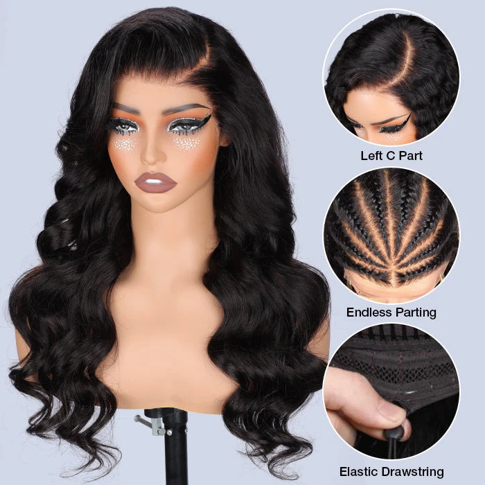 Glueless Body Wave 13×6 Full Frontal HD Lace C Part Wigs With Invisi Drawstring