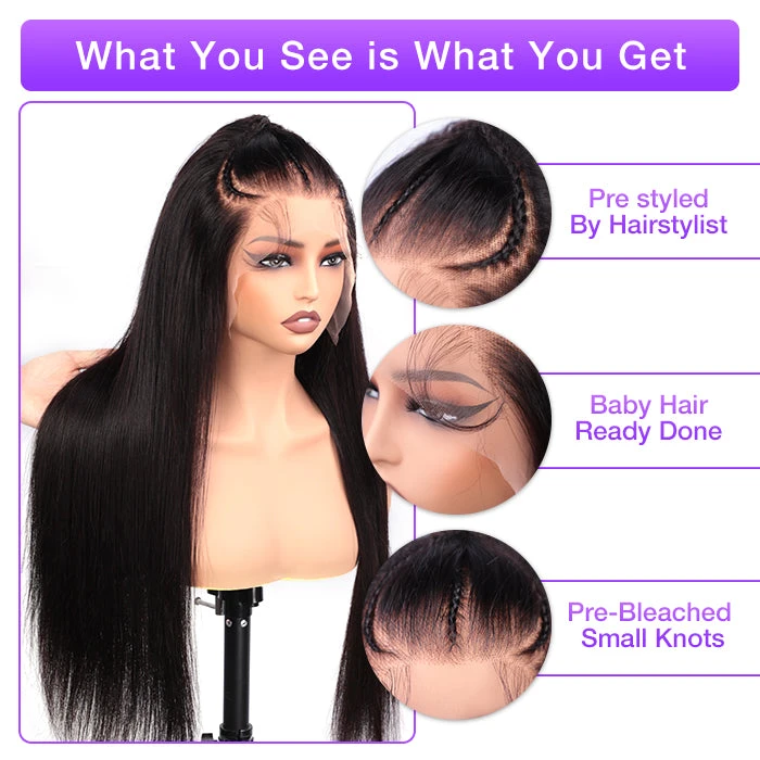 Glueless Pre Braided Wig Straight Human Hair 13×4 HD Lace Frontal Wig Super Secure