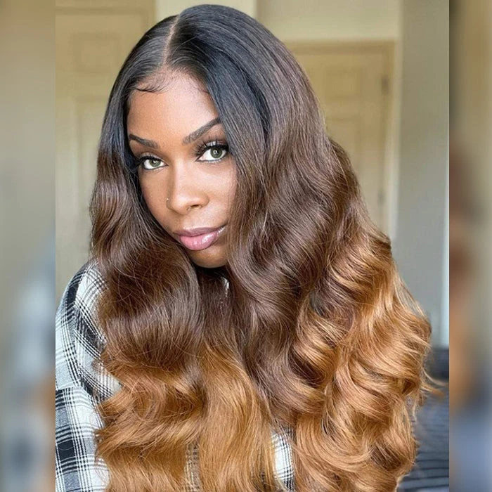 Gorgeous Ombre Color T1B/4/27 Body Wave Undetectable HD Lace Frontal Wigs Pre Plucked