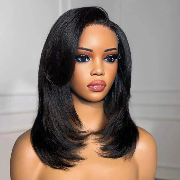 Handcraft Layered Cut 8×5 HD Lace Wear Go Glueless Shoulder Length C Part HD Lace Wig