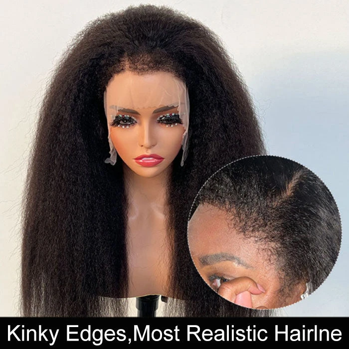 Kinky Edges Hairline Glueless Kinky Straight HD Lace Front Human Hair Wigs Pre Bleached