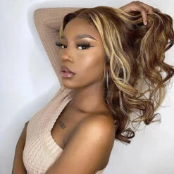 Highlight Orange Brown Lace Front Human Hair Wigs Pre Plucked 13×4 HD Lace Front Wigs For Women