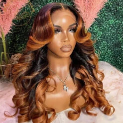 Ombre Ginger Brown Color Lace Front Wigs 13×6 Full HD Lace Frontal Wigs PrePlucked Hairline