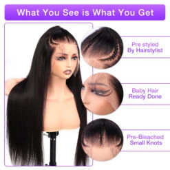 Ear To Ear 13×4 HD Lace Front Straight Wig Pre Cut & Plucked & Bleached Real Glueless Wig