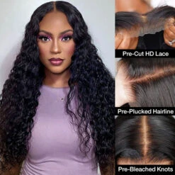 Glueless Water Wave 4×4 HD Invisible Lace Closure Wigs Pre Plucked & Pre Bleached Human Hair Wigs