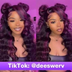 Balayage Purple Highlight Lace Front Wigs 13×4 Transparent HD Lace Human Hair Wigs