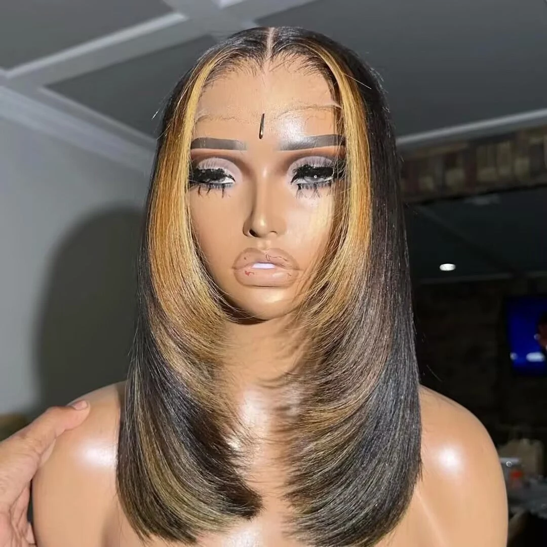Layer Cut Glueless Wigs Ombre Highlight Straight Bob Human Hair Classic HD Lace Wigs