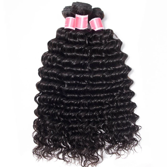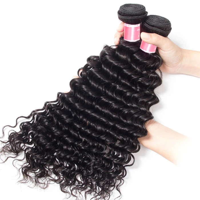 Malaysian Deep Wave 4 Bundles With 13X4 Ear To Ear Lace Frontal Natural Color
