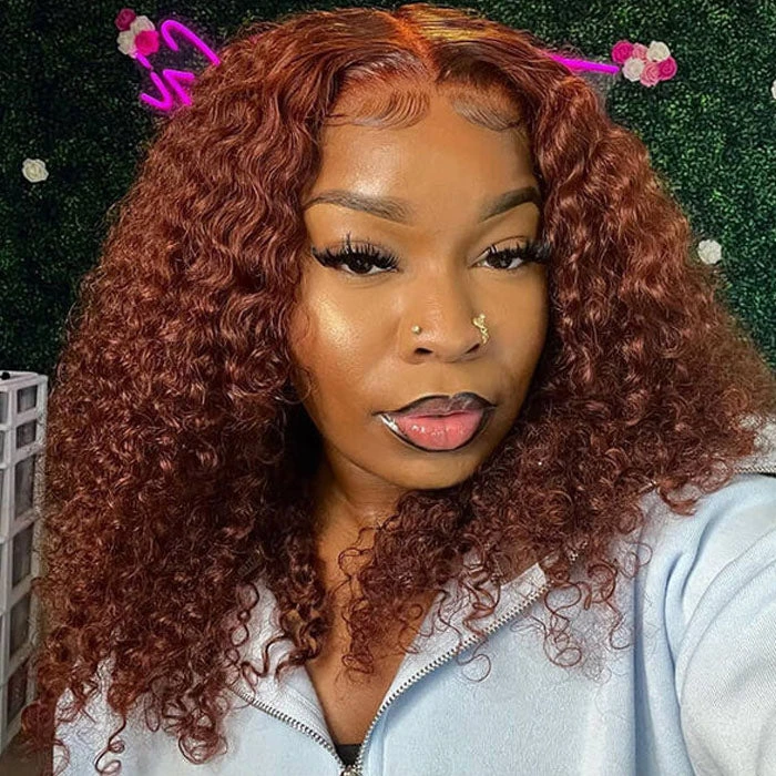 Reddish Brown Color Curly Short Bob Wigs 13X4/13×6 HD Lace Front Human Hair Wigs Pre-Plucked Hairline
