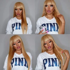 #27 Honey Blonde Human Hair Wigs With Bangs 13×4 HD Lace Wig/Full Machine Made Wig With Bangs
