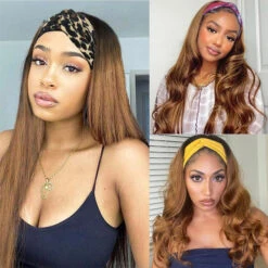 #30 Chestnut Brown Headband Wigs Straight/Body Wave Human Hair Half Wigs With Various Headbands