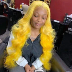 Yellow Colored Human Hair Wig HD Lace Front Wigs Invisible Glueless Cosplay Wig For Women
