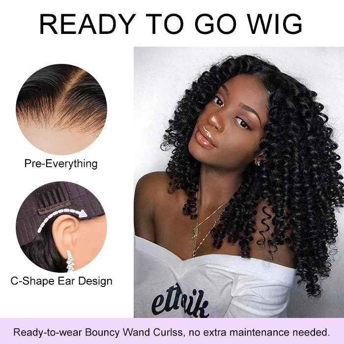 Small Wand Curl Glueless Wig Versatile 8×5 Closure HD Lace Pre Plucked & Bleached Ready To Go