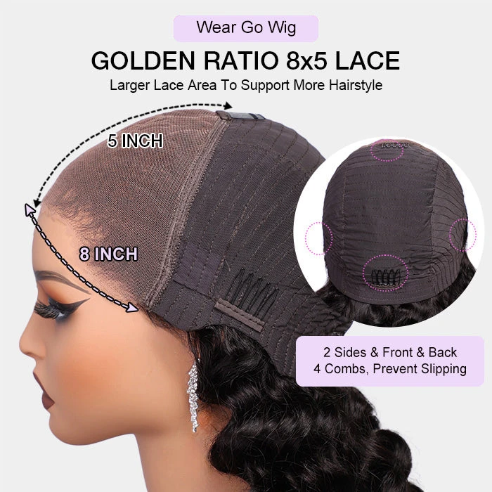 Glueless Wig Deep Wave 8×5 HD Lace Human Hair Pre Plucked & Bleached Ready To Go