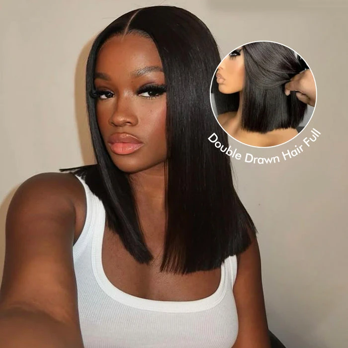 Super Double Drawn Human Hair Straight Bob Wig 13×6 HD Glueless Wig Pre Plucked & Bleached