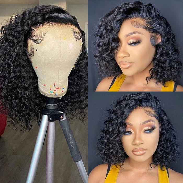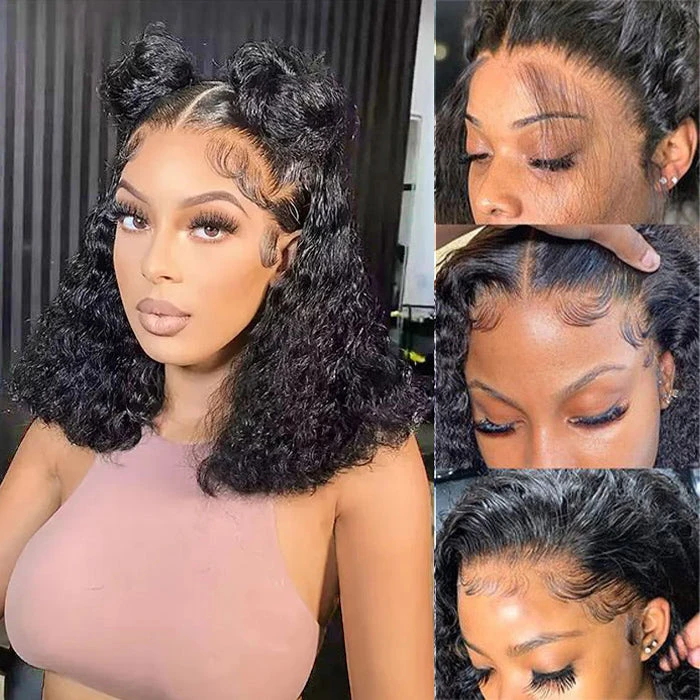 Water Wave Short Bob 13×4 Lace Front Wigs 100% Human Hair Pre Plucked Glueless Lace Front Wigs