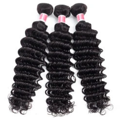 Malaysian Deep Wave 3/4 Bundle Deals Unprocessed Virgin Human Hair Bundles Natural Black Color
