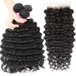 Malaysian Deep Wave 4 Bundles With 4×4 Lace Closure Human Hair Closure With Bundle Deals