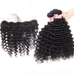 Peruvian Deep Wave 4 Bundles With 13×4 Lace Frontal 10A Virgin Human Hair Bundles With Frontal Deal